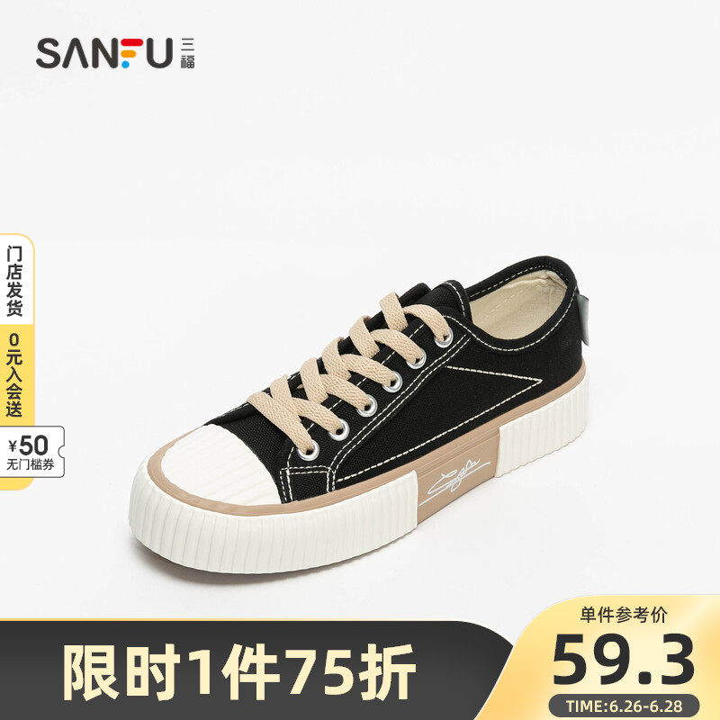 三福帆布鞋女2021夏季撞色饼干鞋低帮软底板鞋设计感女鞋百搭布鞋热门设计联盟服务商