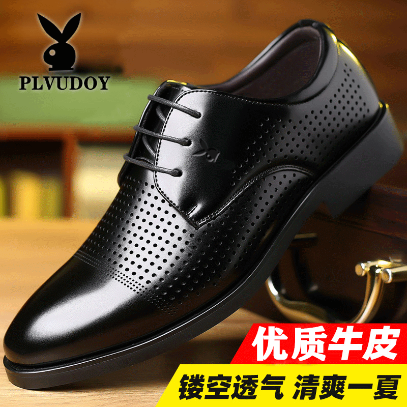 皮鞋男夏季商务休闲真皮男士英伦正装黑色软底镂空透气男鞋沥鞋热门设计联盟服务商
